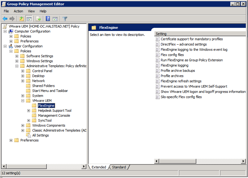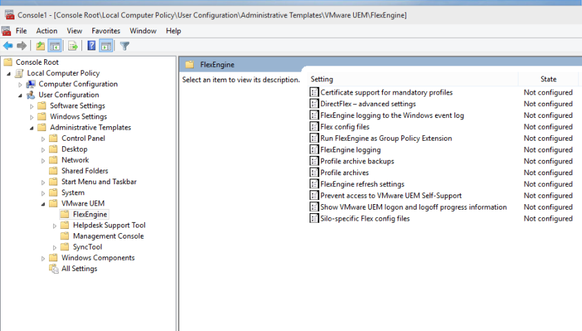Browse to:  User Configuration | Policies | Administrative Templates | VMware UEM | FlexEngine