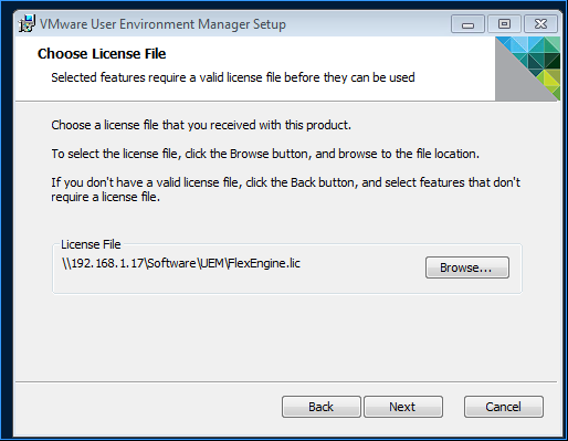 In order for VMware UEM to be able to manage settings on a system, the UEM FlexEngine must be installed.  The UEM FlexEngine installation is provided as an .msi file.   There is an .msi for both 32 and 64-bit systems.   Choose the proper installation file, taking the defaults.   You will need to specify the license file as part of the installation as well.