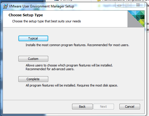 VMware recently announced the release of the User Environment Manager (UEM) product.   This is the former Flex+ product from the acquisition of Immidio.   I have had the opportunity to test the solution over the past several weeks.   I really like the solution and the granularity of application and environment settings that can be managed.   I will be releasing several blog articles going over how to use different features within VMware UEM.    In this initial article in the VMware UEM blog series I will go through the process of installing and doing initial configuration of the UEM solution.