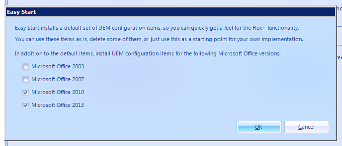 We will now enable “Easy Start” to pre-populate UEM with many popular Windows and Application settings.  This is a great way to start and learn the product.