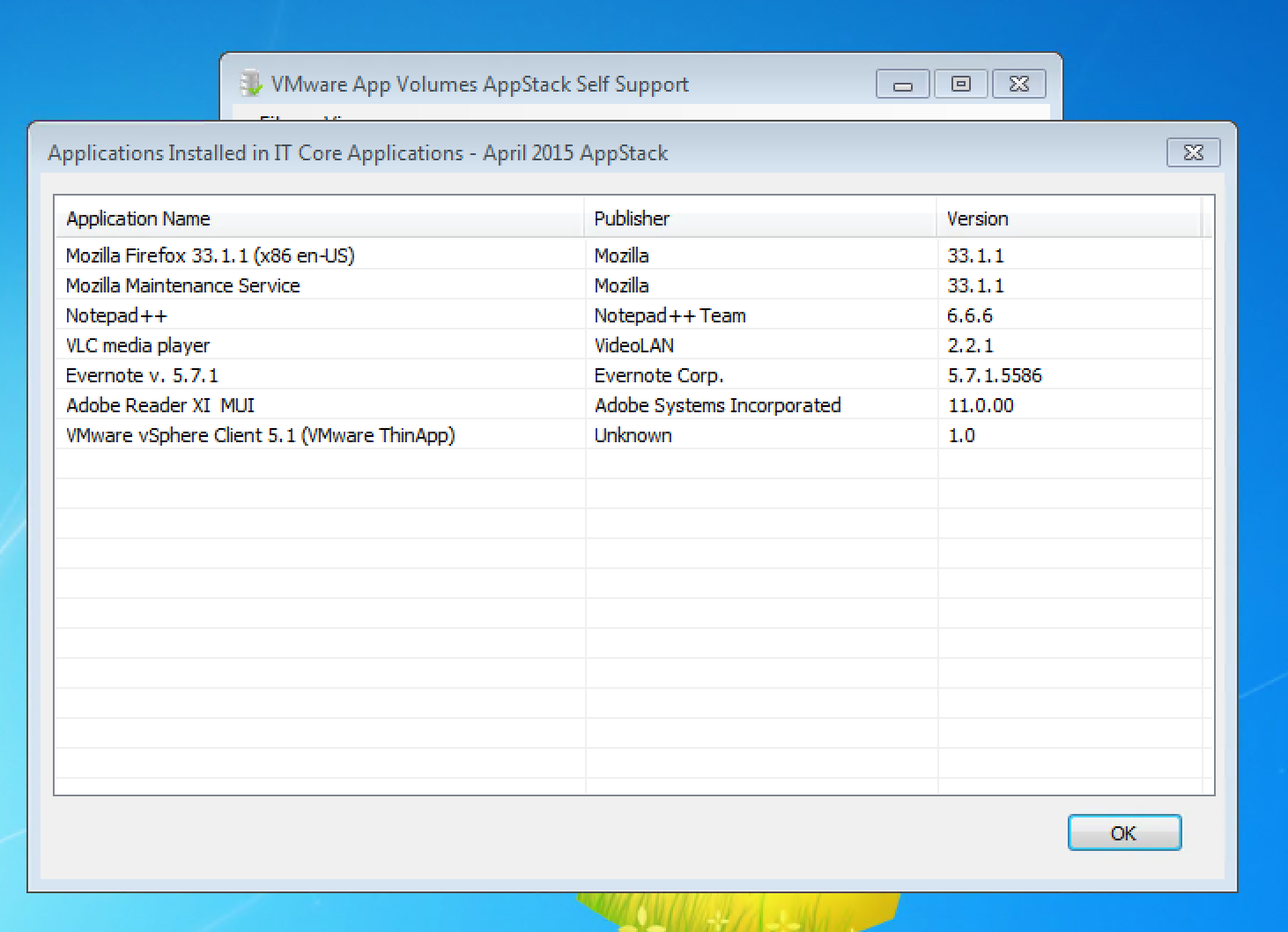 - RDSH – This utility can also be used with RDSH servers (VMware or Citrix) that have the App Volumes agent installed. The utility will only show those AppStacks that apply to the RDSH host. AppStacks can be browsed by right-clicking to see what they contain. I publish this utility as a hosted application and manage the delivery of AppStacks to my RDSH hosts that way.