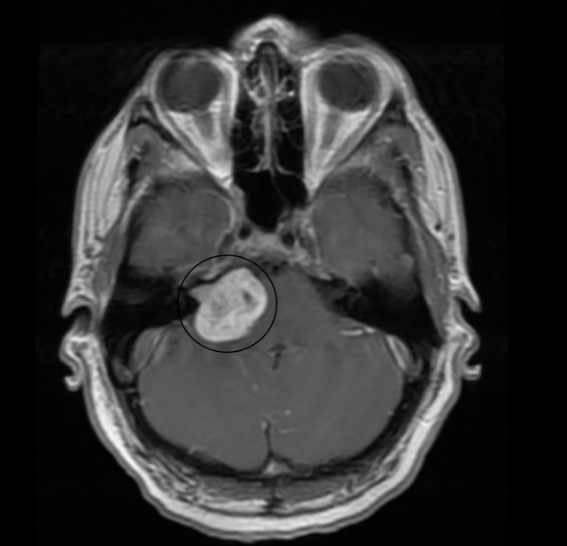 37mm Acoustic Neuroma brain tumor – pushing on my brain stem and you can see it going into my ear canal.